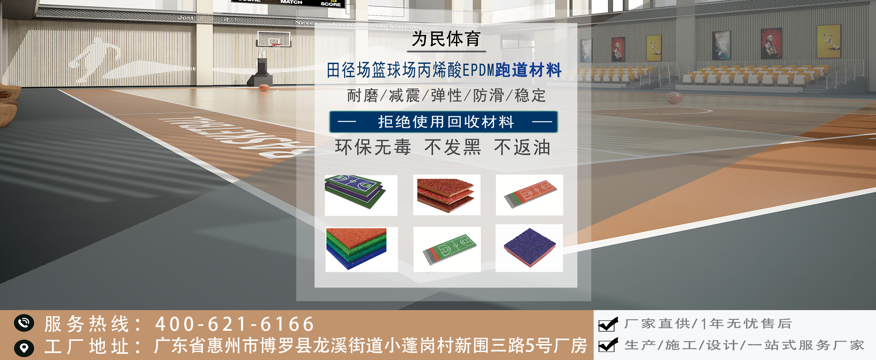 廣東為民體育產(chǎn)業(yè)有限公司是一家專業(yè)致力于塑膠跑道、納米硅PU球場、水性丙烯酸材料的生產(chǎn)、服務(wù)于一體的系統(tǒng)集成制造商。為民體育始創(chuàng)于2012年,始創(chuàng)團(tuán)隊(duì)擁有15年的體育地面材料生產(chǎn)、研發(fā)、施工、營銷經(jīng)驗(yàn),一直以來,堅持“質(zhì)量為本,效率為先”的經(jīng)營理念,以“我的目標(biāo)就是讓您滿意”的服務(wù)理念,制造出高標(biāo)準(zhǔn)、高質(zhì)量的產(chǎn)品,提供高效、無憂的產(chǎn)品售后服務(wù)。目前為民體育已提供超過100萬平方米的塑膠跑道、硅PU球場、丙烯酸體育地面材料,得到市場的廣泛認(rèn)可。 廣東為民體育產(chǎn)業(yè)有限公司生產(chǎn)基地位于廣東省惠州市博羅縣園洲鎮(zhèn)廖尾村華潤工業(yè)區(qū),工廠占地面積超過10000平方米,塑膠跑道、硅PU球場、丙烯酸材料年產(chǎn)量達(dá)到100000噸以上。 面向未來,為民人將以“全力以赴”的姿態(tài)迎接新時代的體育行業(yè)挑戰(zhàn)與機(jī)遇,讓運(yùn)動更安全、讓運(yùn)動更健康!